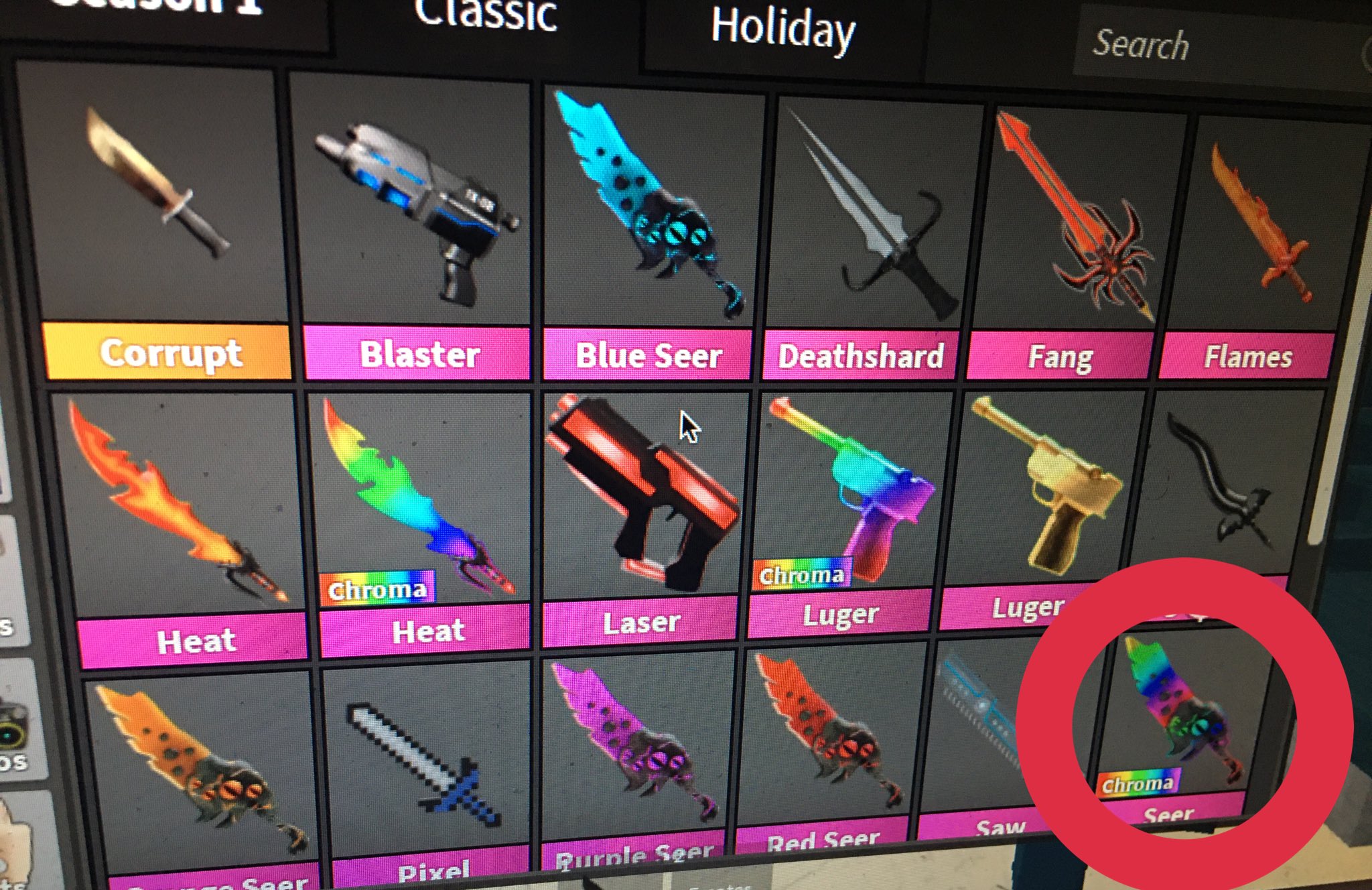 In season 1 , every crate was given an unboxable chroma version of the godly weapon, although, the chances of unboxing a chroma are extremely rare. Chroma seer is the chroma version of seer added in season 1. Roblox is pretty boring and ive moved on to real games. Keep in mind that items placement inside a specific tier is important. Inventories, trades, suggestions, item submissions, etc!